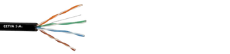 Cable de cuatro pares de cobre trenzados sin blindaje metálico. Utilizado en redes de datos, soporta estándares como CAT5e, con capacidad de hasta 1 Gbps. Para instalación exterior.